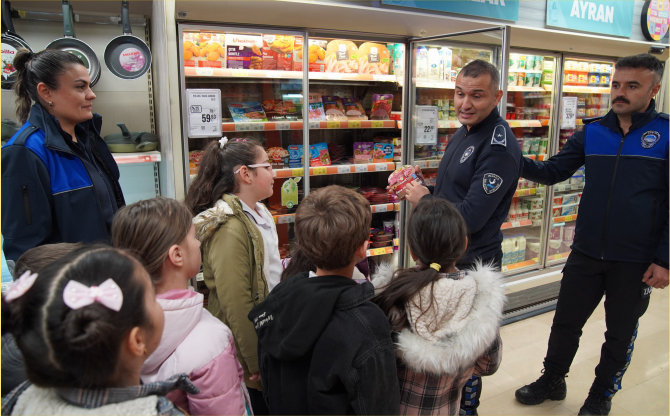 Eğitim, sahada yapılan örnek uygulamayla devam etti. Zabıta personeli eşliğinde marketlere giden öğrenciler, denetim süreçlerini yerinde gözlemledi. Özellikle ürünlerin son kullanma tarihleri kontrol edilerek halk sağlığının nasıl korunduğu uygulamalı olarak anlatıldı. Denetim sürecini dikkatle takip eden öğrenciler, ürün kontrollerine de aktif şekilde katıldı. Programın sonunda zabıta personeli tarafından öğrencilere bilgilendirici broşürler ve çeşitli hediyeler dağıtıldı.