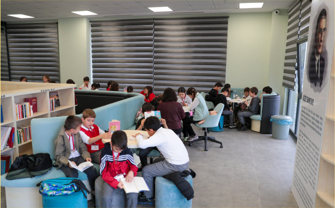 Kütüphane Haftası etkinlikleri çerçevesinde kütüphaneyi ziyaret eden öğrencilere, üyelik süreçleri ve kütüphane kuralları hakkında bilgilendirme yapıldı. Öğrenciler, merak ettikleri soruları sorma fırsatı bulurken, kütüphaneden seçtikleri kitaplarla okuma etkinliğine katıldı. Bu sayede öğrencilerin hem okuma alışkanlığı kazanmaları hem de kütüphane ortamını yakından deneyimlemeleri sağlandı.