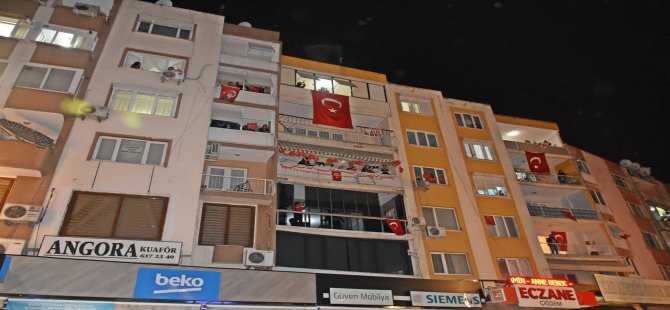 Gerçekleştirilen bando gösterilerinin ardından saatler 21.00’i gösterdiğinde, Türk Bayrakları ve Atatürk posterleriyle süsledikleri balkonlarına çıkan Aliağalılar, tüm Türkiye ile birlikte aynı anda İstiklal Marşı’nı coşkuyla söyledi. / EGE BASIN GRUBU