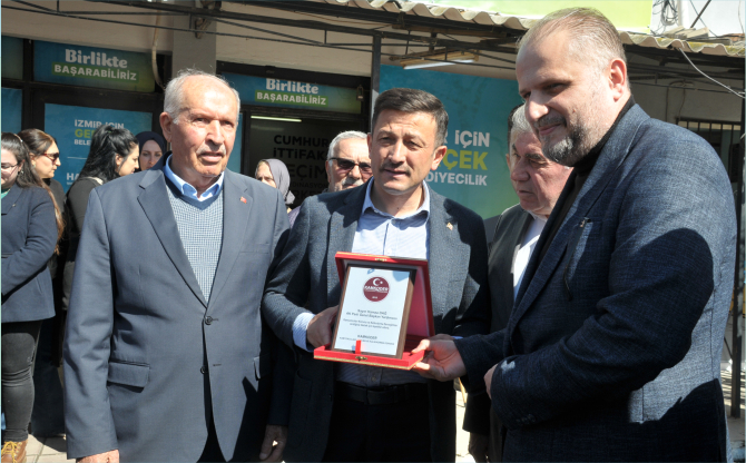 Kahvehanelerde vatandaşlarla buluşan Hamza Dağ ve Aliağa Belediye Başkanı Serkan Acar, vatandaşlarla ile hoş sohbetler gerçekleştirdi. Kamyoncuları Koruma ve Kalkındırma Derneği (KAMKODER) Başkanı Osman Karademir tarafından İzmir Büyükşehir Belediye Başkanı Adayı Hamza Dağ'ya Plaket takdim edildi.