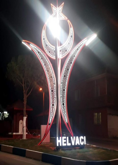 Kent merkezinde İnönü Bulvarı, İstiklal Caddesi ve Yeni Mahalle Cengiz Topel Caddesi’ne konumlandırılan ay yıldız kent görseli şimdi de Helvacı’yı süslüyor. Fen İşleri Müdürlüğü’ne bağlı ekiplerce yapılan çalışmalar kapsamında Helvacı merkeze konumlandırılan 10 metre yüksekliğindeki Selçuklu motiflerine hakim ay yıldız kent görseli şimdiden mahalle sakinlerinin beğenisini kazandı. Ay yıldız kent görseli özellikle akşam saatlerinde kırmızı beyaz renkli ışıkları ile görenleri kendisine hayran bırakıyor.
