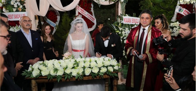 Milliyetçi Hareket Partisi (MHP) İzmir İl Başkanı Veysel Şahin ve Hayriye Şahin’in oğlu Devlet Batuhan Şahin ile Erdoğan ve Hülya Fıçıcı Ailesinin kızları Gözde Fıçıcı muhteşem bir düğün töreniyle dünya evine girdi. Cumhur İttifakı protokolünün zirvesine dönen düğünde davetliler arasında İzmir’in tanınmış simaları da yer aldı.