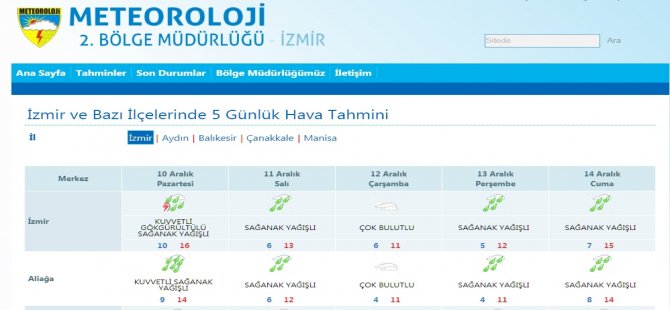 ALİAĞA’DA TAHMİN EDİLEN BEŞ GÜNLÜK HAVA DURUMU