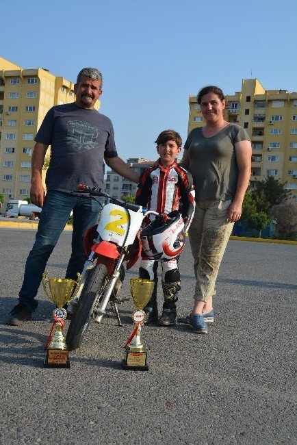 Aliağa ilçesinde yaşayan ve tam bir motosiklet tutkunu olan 9 yaşındaki Aras Efe Yıldırım, görenleri kendisine hayran bıraktırıyor. Motosikletle tanıştığı andan itibaren bir daha bırakmayan Aras Efe Yıldırım, kısa süre içerisinde başarıdan başarıya koşarak kupalar kazandı. Şimdilerde Sakarya'da düzenlenecek Süpermoto Türkiye Şampiyonası'nın 2. ayak yarışına hazırlanan minik Aras, her gün antrenmanlar yaparak müsabakalara hazırlanıyor.