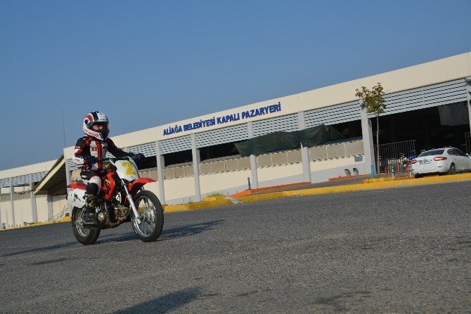 İzmir'in Aliağa ilçesinde yaşayan ve Sakarya'da düzenlenecek Süpermoto Türkiye Şampiyonası'nın 2. ayak yarışına hazırlanan 9 yaşındaki Aras Efe Yıldırım, Aliağa ilçesindeki kapalı pazar yerinde yarışlara hazırlanıyor. Minik Aras, gelecekte ise milli motosikletçi Kenan Sofuoğlu gibi şampiyon olmak istiyor.