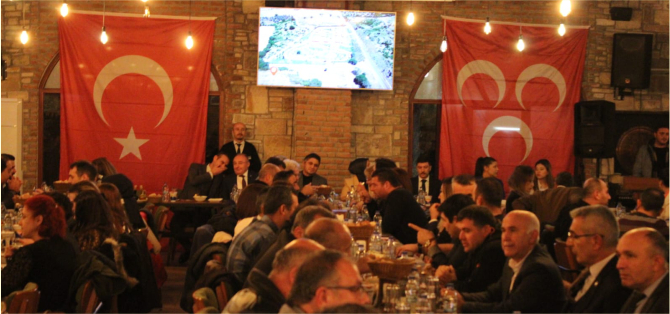MHP İlçe Teşkilatının birik, beraberlik ve kaynaşma altında düzenlediği yemek organizasyonu ile Başkanlar ve sendika başkanları hep birlikte dayanışma ve kucaklaşma altında anlamlı bir mesaj vermiş oldu.