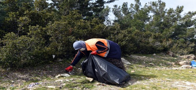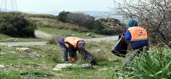 Aliağa Belediyesi, kentin akciğeri konumunda olan ormanlık alanlarda temizlik çalışması başlattı.